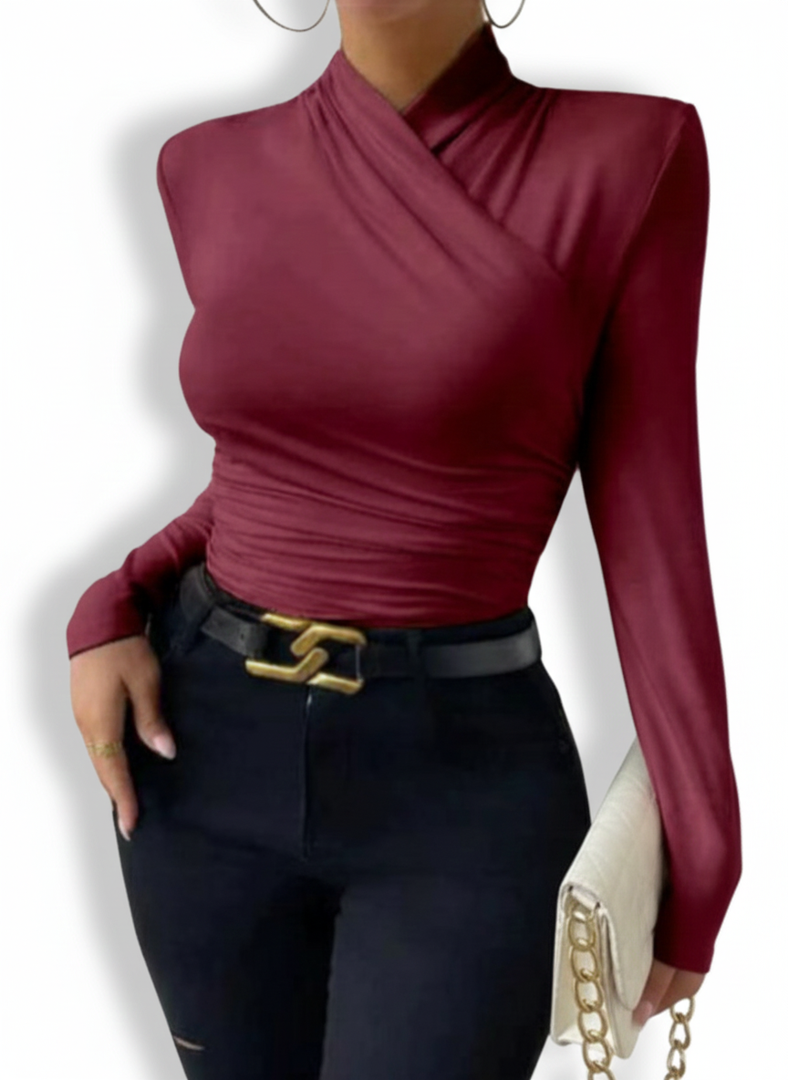 Antonella - Blusa Entallada con Cuello Cruzado y Plisado