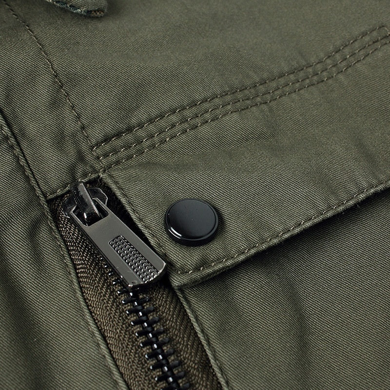 Diseño: Chaqueta de inspiración clásica con cuello estructurado, cierre frontal con botones y bolsillos funcionales que refuerzan su carácter utilitario.