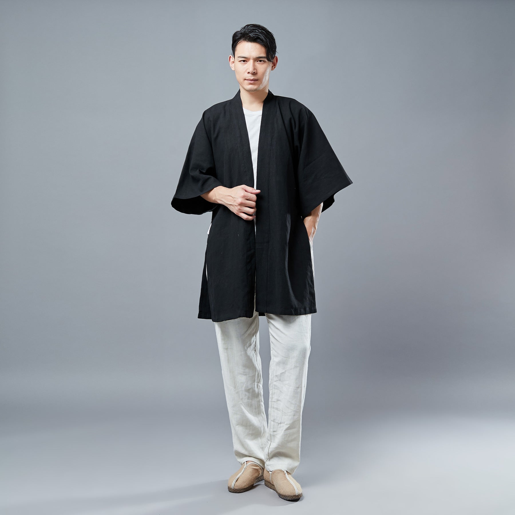 Disponible en colores neutros como negro, gris y blanco, es una prenda versátil que se adapta fácilmente a distintos gustos y estilos. Su tejido ligero ofrece una caída suave y agradable al tacto, perfecta para climas templados o para usar sobre pijamas o ropa casual.