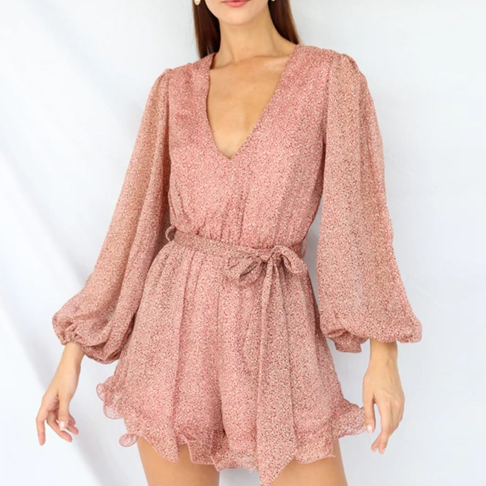 Diseño: Mono corto con escote profundo en V y cinturón integrado que define la cintura con elegancia.