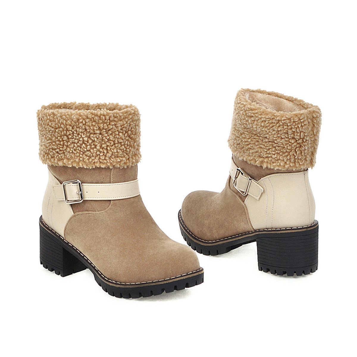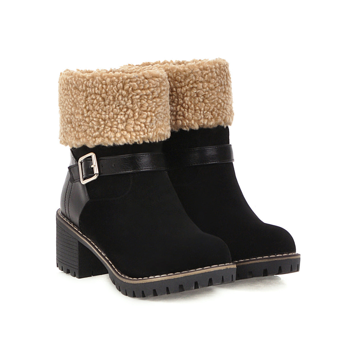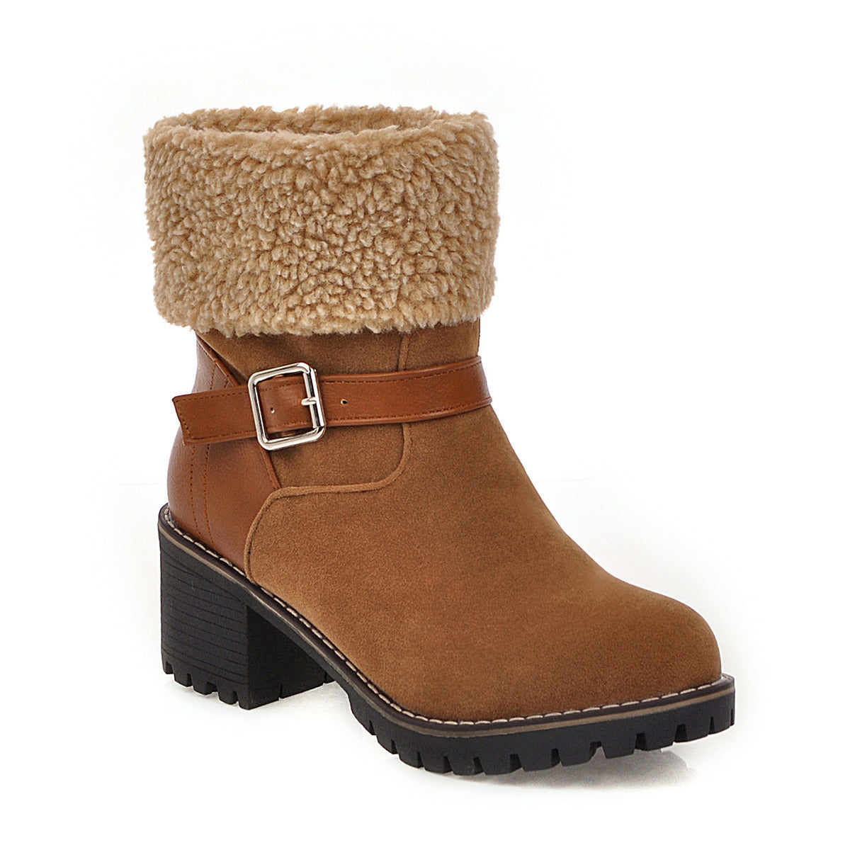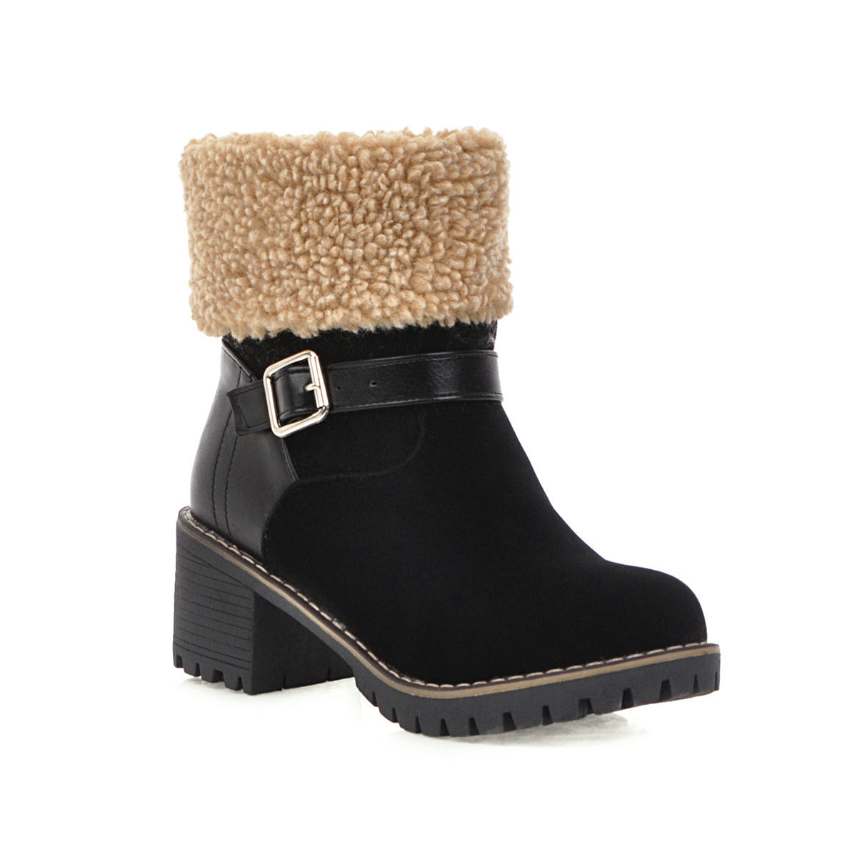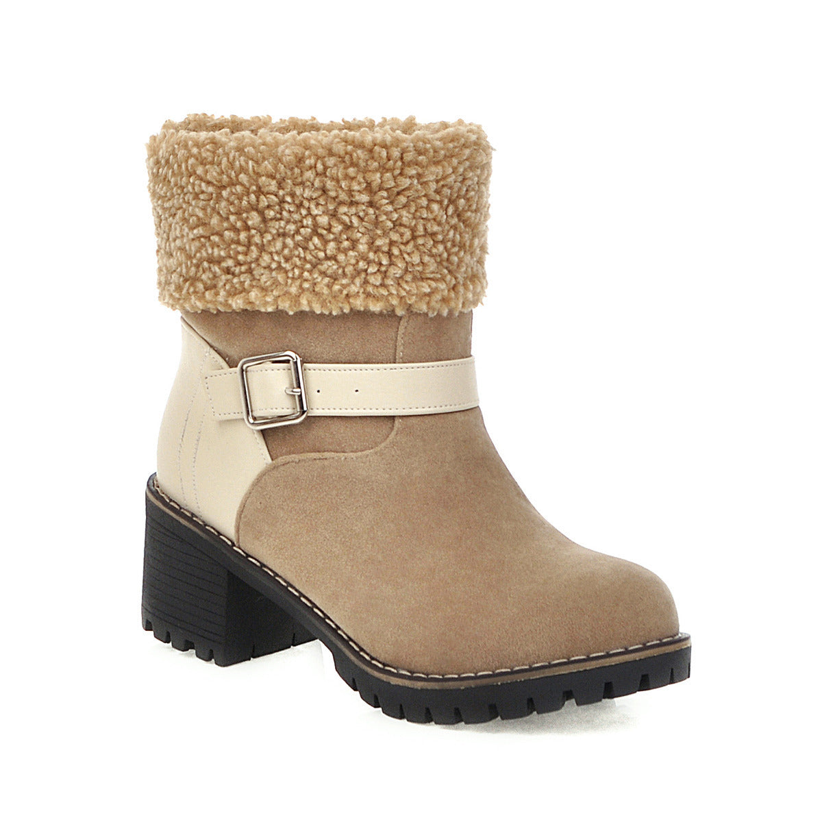 El tacón ancho y estable proporciona altura sin sacrificar comodidad, mientras que la suela dentada antideslizante garantiza una pisada firme en distintas superficies. Su interior cálido lo convierte en una excelente opción para uso diario durante el otoño e invierno.