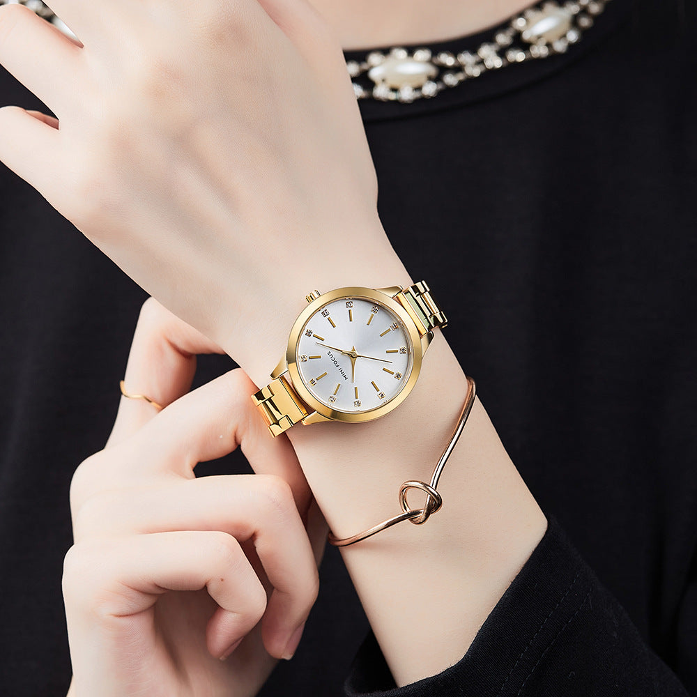 El Reloj Mini Focus Élite es la pieza que toda mujer necesita para elevar su look diario. Diseñado con una estética minimalista y moderna, este reloj combina la robustez del acero inoxidable con la delicadeza de los detalles de joyería, creando un accesorio que no solo da la hora, sino que cuenta una historia de sofisticación.